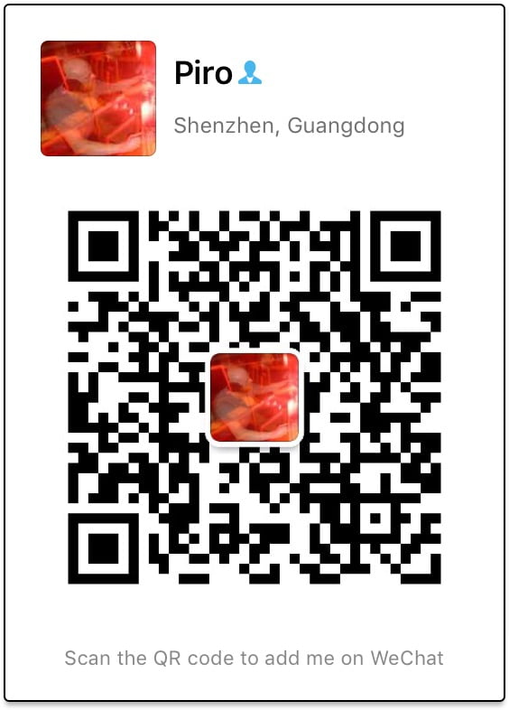 or contact chinese representative in Shenzhen – Marcin Romanowski aka Piro by telephone +86 185 6566 0405 or via WeChat using linked QR code.